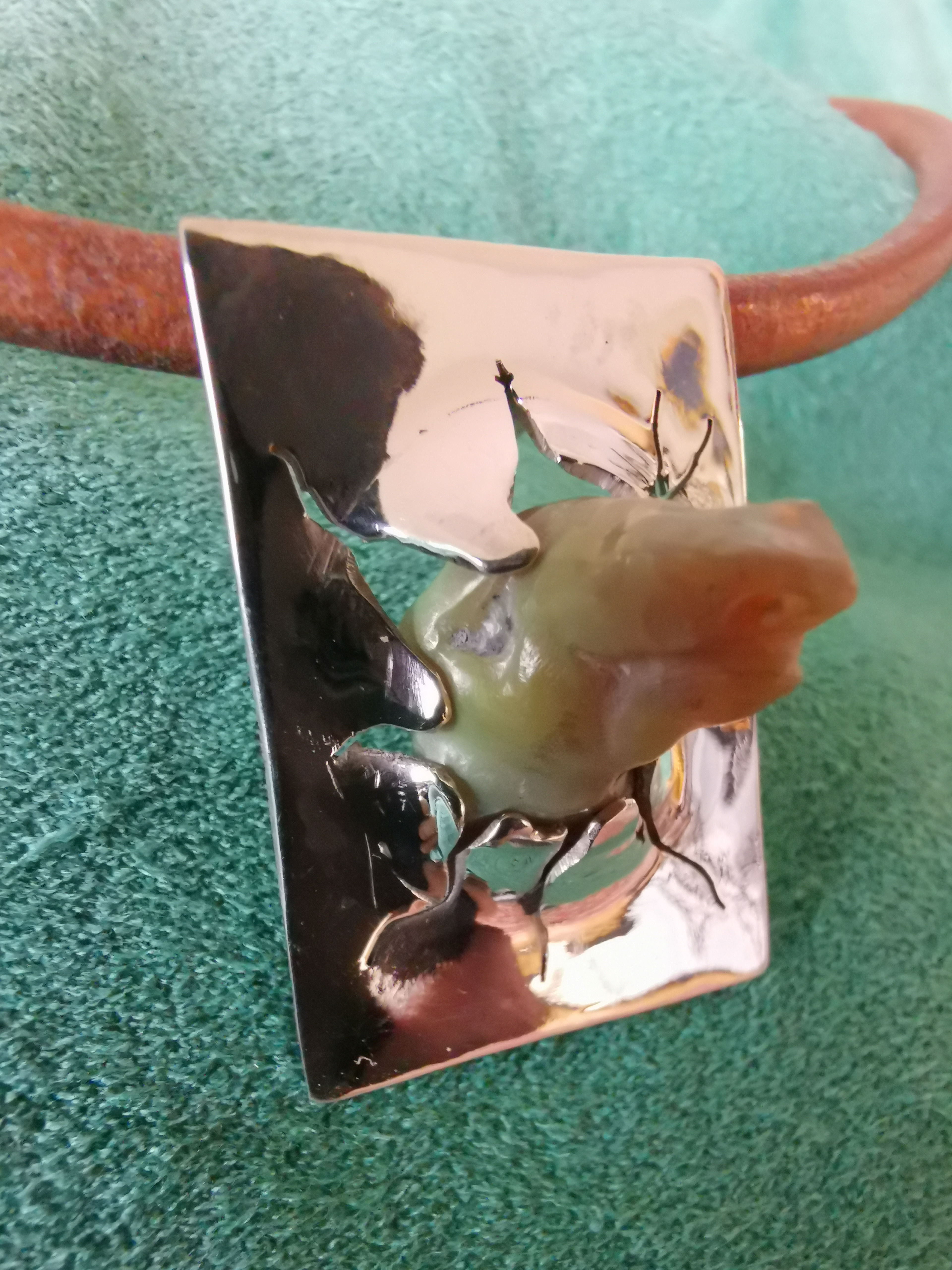 Schmuckstücke aus Wurzelholz, Silber und Schmucksteinen. Die Hölzer sind Fundstücke , hart und ausdrucksstark.